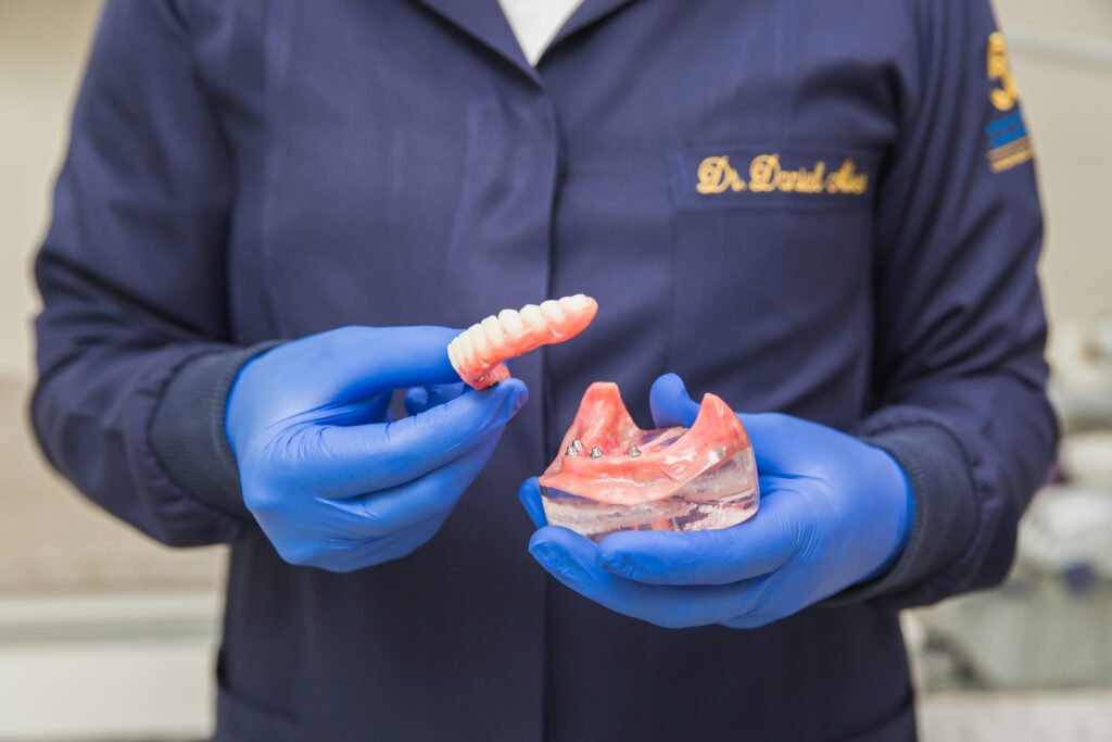 Procedimento que substitui dentes perdidos por pinos de titânio fixados no osso, permitindo a colocação de um novo dente artificial.